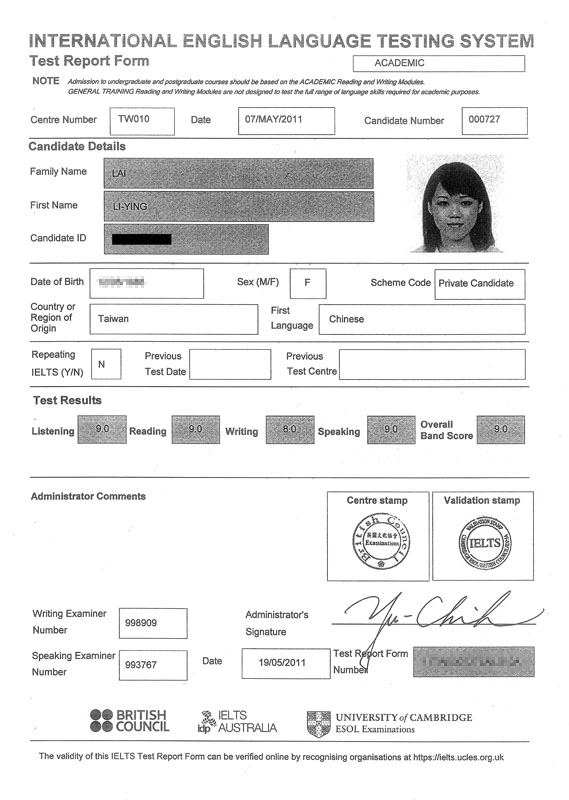 雖然我在澳洲長大,英文理所當然的也不差,但是畢竟回來台灣將近十年了,很多單字、寫作技巧都忘記了。為了申請研究所,我來到了劍橋台北。顧問很熱心的幫我做了IELTS的測驗,發現還是有進步的空間,所以就報名上課。一開始,有點懷疑上課對我來說幫助到底有多少,但當我看到我的成績,一切都覺得很值得。這個分數絕對不是我一個人能辦到的!