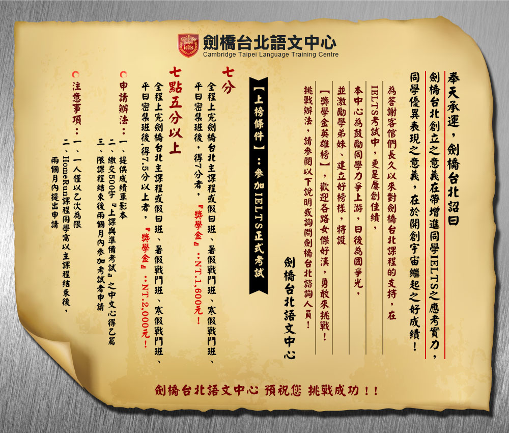 由於我上課的班級為七分衝刺班,班上的同學們都有一定的英文程度,所以老師在上課時就會針對一些可以加分的細節作補充,也會提供我們一些考試的小技巧。在經過一個月的課程之後,真的讓我的英文進步了許多